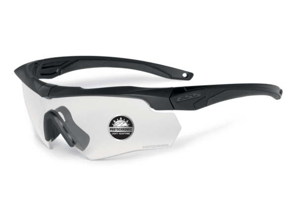 One Black Crossbow frame w/Photochromic lens, zippered hard case, microfiber cleaning pouch & elastic retention strap.